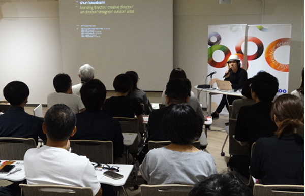 川上氏の活動領域は多岐にわたり、企業やブランドのロゴ・アイデンティティ、広告・キャンペーン、グラフィック、ウェブ、タイポグラフィ、UI、映像、モーショングラフィック、インスタレーション、エキジビション、空間演出、サインデザイン、インテリア、そして建築に至るまで、一気通貫したブランドデザインを行い、ビジネス視点によるリサーチや分析を組み合わせたブランディング及びデザインコンサルティングを行っている。アイデアの源泉は自ら経験したことがベース。その上で、グラフィックデザインの領域を広げ、またグラフィック以外の領域も広げていき、ブランディング=長く続く資産を生みだせるようにしていきたい。と、語られました。参加者からは、グラフィックデザインの領域を広げる視点が刺激になったようです。