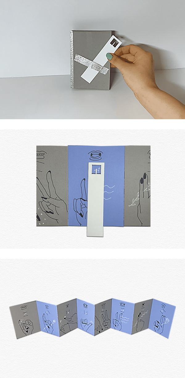 すぐに消えるメッセージでコミュニケーションを取る私たち。ずっと残る言葉を書くことは、ハードルが上がっているように感じます。しかし、感謝の気持ちを残したいという想いは今も昔も変わらないはず。残したくないけど残したい。母への日頃の感謝を伝えるため、せめぎ合う二つの気持ちを手紙にしました。手話と口の形で文字を表現し、ルーペをかざすと一文字ずつ読めるようになっています。(イ・ツ・モ・ア・リ・ガ・ト・ウ)