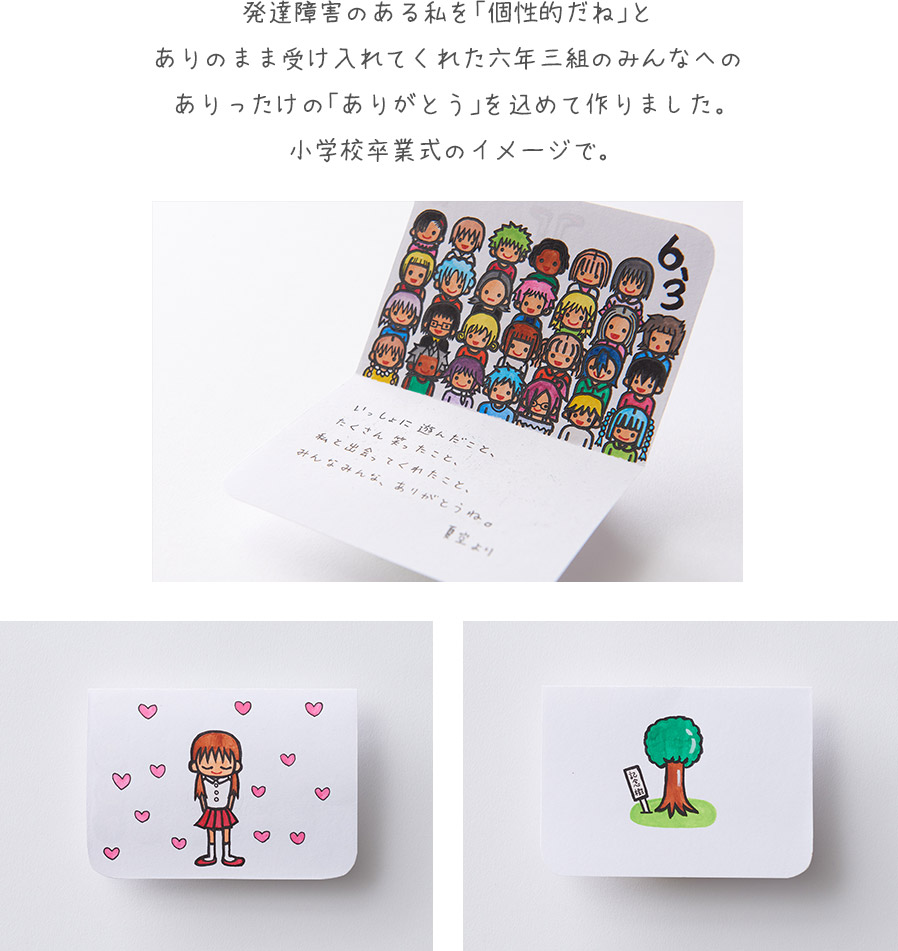 2年生のたんにんで、本が大好きな先生へありがとうの感謝の気持ちを本のようなカードで、伝えました。一年間の思い出や、行事・楽しかったことや嬉しかったこと。そして今は、別の小学校で働く先生に先生に、あの1年間をもう一度、思い出してほしいから…。先生への感謝や思いを、三枚のカードにせいいっぱい表現しました。もらった先生がより喜んでくださるよう、笑顔があふれますよう、あざやかな、明るい色を使って楽しく、二年生を思い出しながら作りました。今は、一緒にはいないけどまた、一緒に過ごせる、楽しく・素晴らしい日々が来ることを祈っています。あの優しくすばらしい先生への思いを本で伝えました。