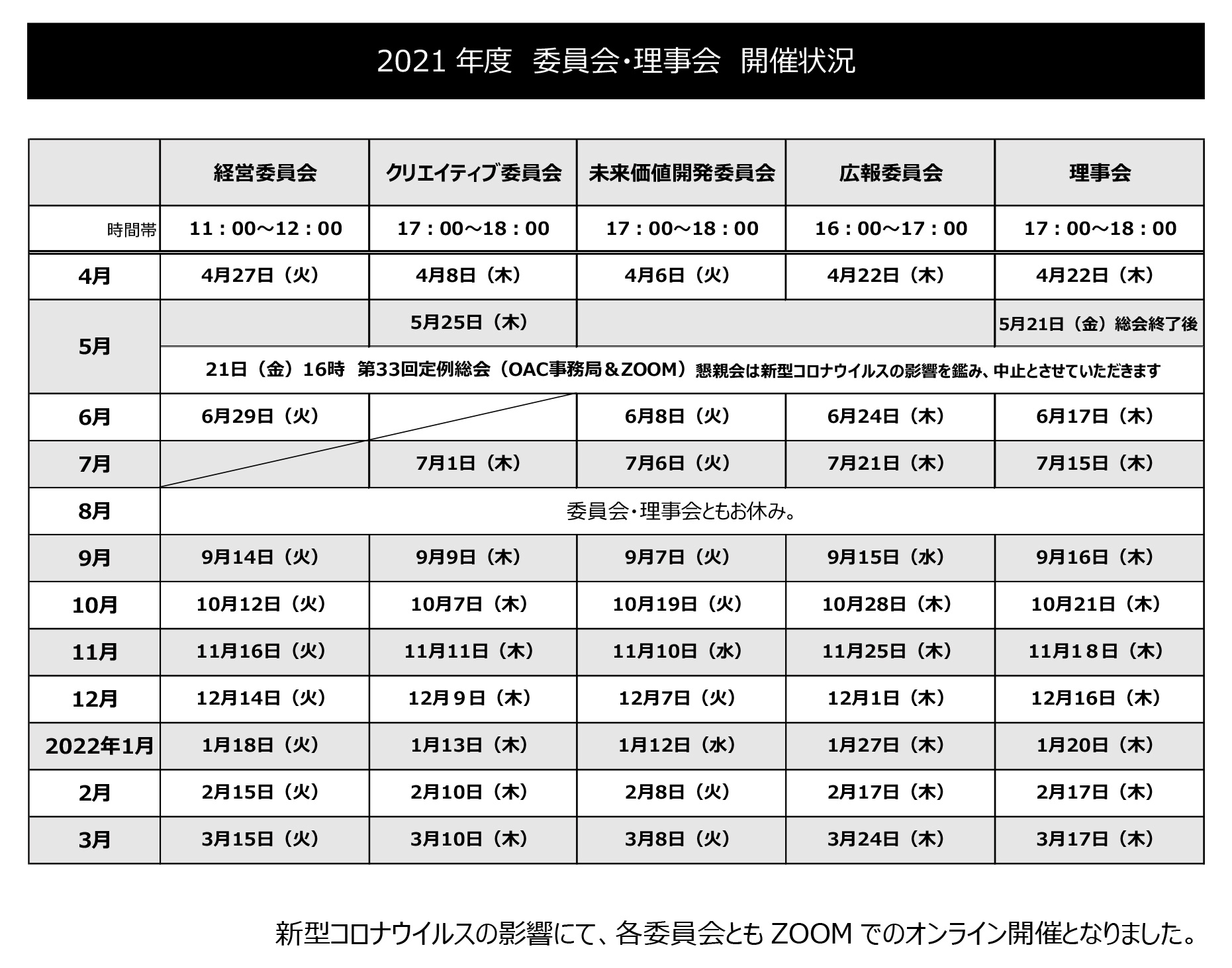 広告関係23団体との情報交換に参加。全てオンラインでの開催となりました。こちらもコロナ禍での運営方法や各団体所属企業の動向などが報告されました。