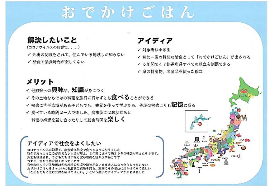 「自ら課題を見つけ、自ら解決策を考える」をコンセプトに 開催している学生向けコンテスト。この取り組みが教育方針とも合致したのか、今回は中学校・高等学校からの応募が増えました。学校としても新型コロナウイルスの影響により、様々な「体験の場」・「気づきの場」が減少する中、 本コンテストのコンセプトが通常の授業とは別の観点で評価されたものと思われます。