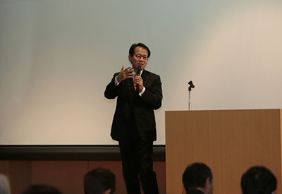 「産学官」連携による情報交換会、第一部講演のラストは、文部科学大臣補佐官の鈴木寛氏です。2001年に参議院議員初当選後以降、文教科学委員会に所属し、2009年からは2期にわたって文部科学副大臣に就任。2014年10月には下村文部科学大臣のもとで文部科学省参与に就任され、2015年からは文部科学大臣補佐官と、15年にわたって文部科学政策に携わられてきました。