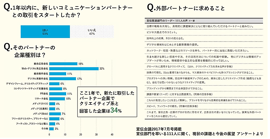 そうした状況下、企業の担当者が抱える大きな悩みの一つとして、それぞれの制作物のクオリティ・効果を最大化できるクリエイティブパートナーをどのように選んでいいかわからないというものがあります。