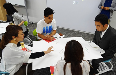 さてメンバーは席替えをして、また同じテーマで話し合います。