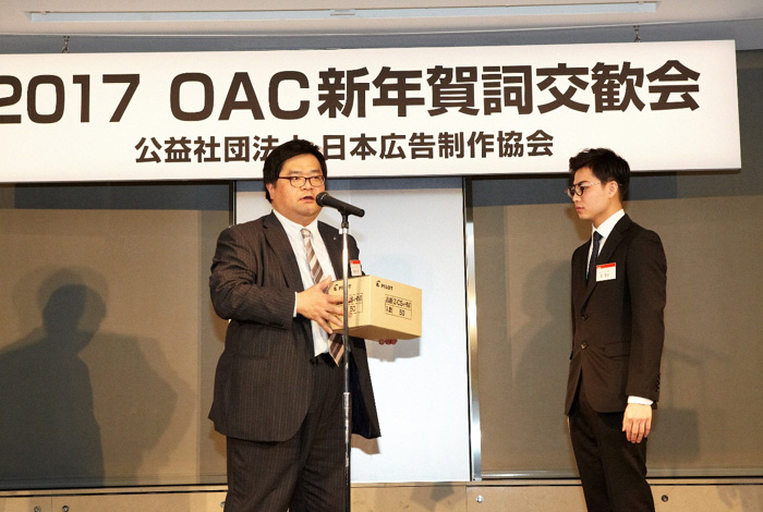明星食品株式会社より菅野様、株式会社パイロットコーポレーションより吉田様をお迎えし、表彰式です。