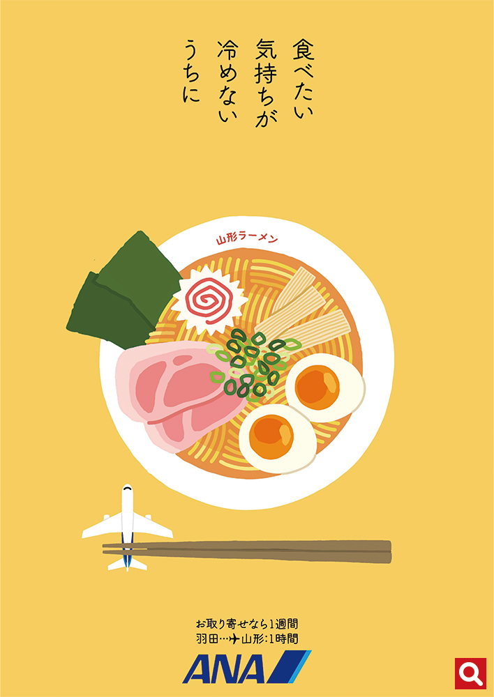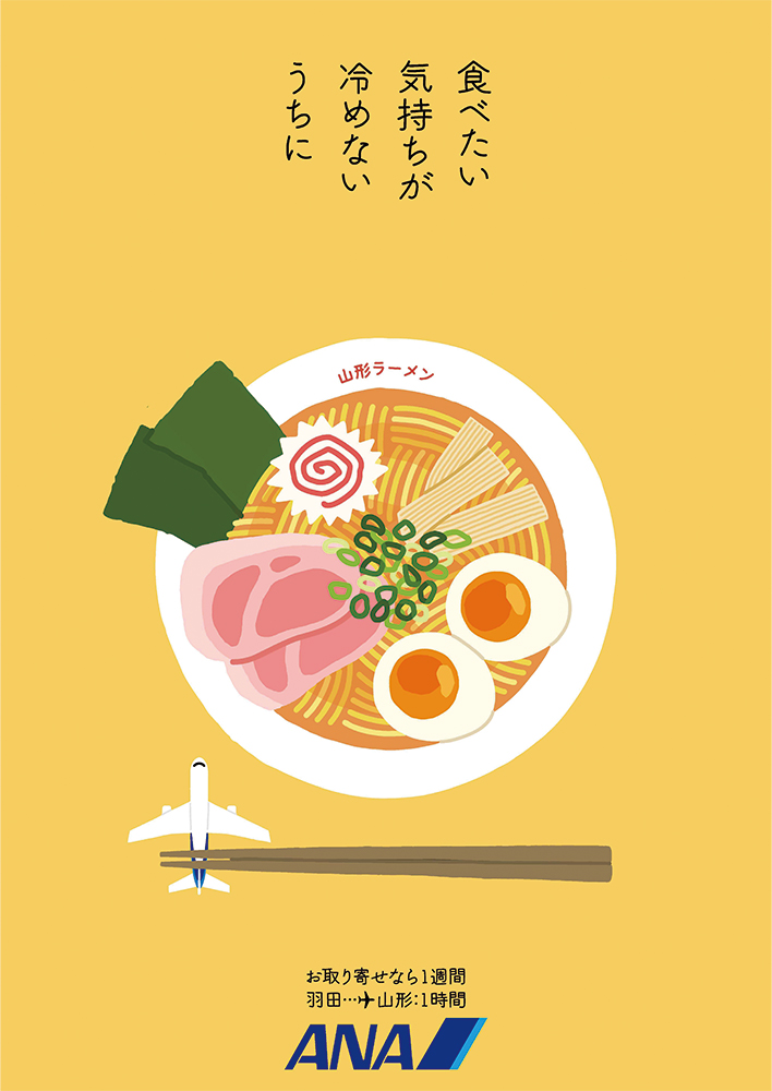 「旅行欲」に訴えかけ、「よし、山形に行ってみようか!」と思わせてくれるような簡潔な標語は、作品のテイストにフィットしていて、思わず唸ってしまいました。さらに「食」を中心に、様々な「各地」に展開可能で、日本全国、世界各都市の紹介をする「続編」を思わず期待してしまう作品です。