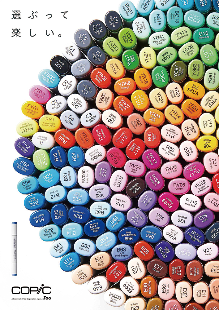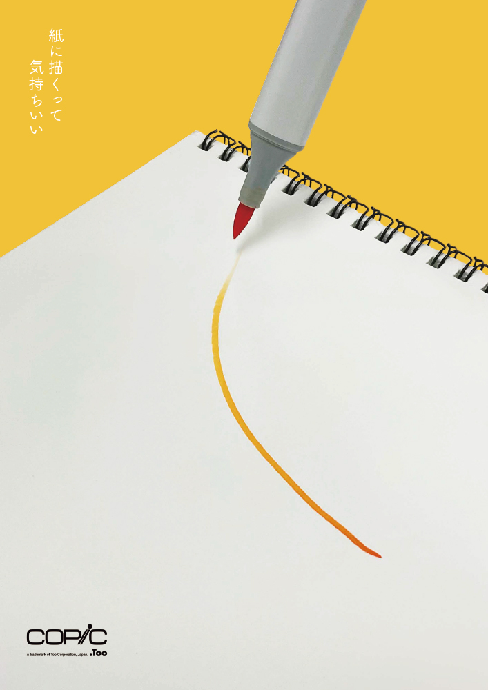 品質にこだわったコピックならではの「気持ちよさ」をグラデーションがかったシンプルなラインで表現しており、タブレットにはない触感と色がもたらすわくわく感に興味を惹かれる方もきっといるのでは、と期待し選考させていただきました。