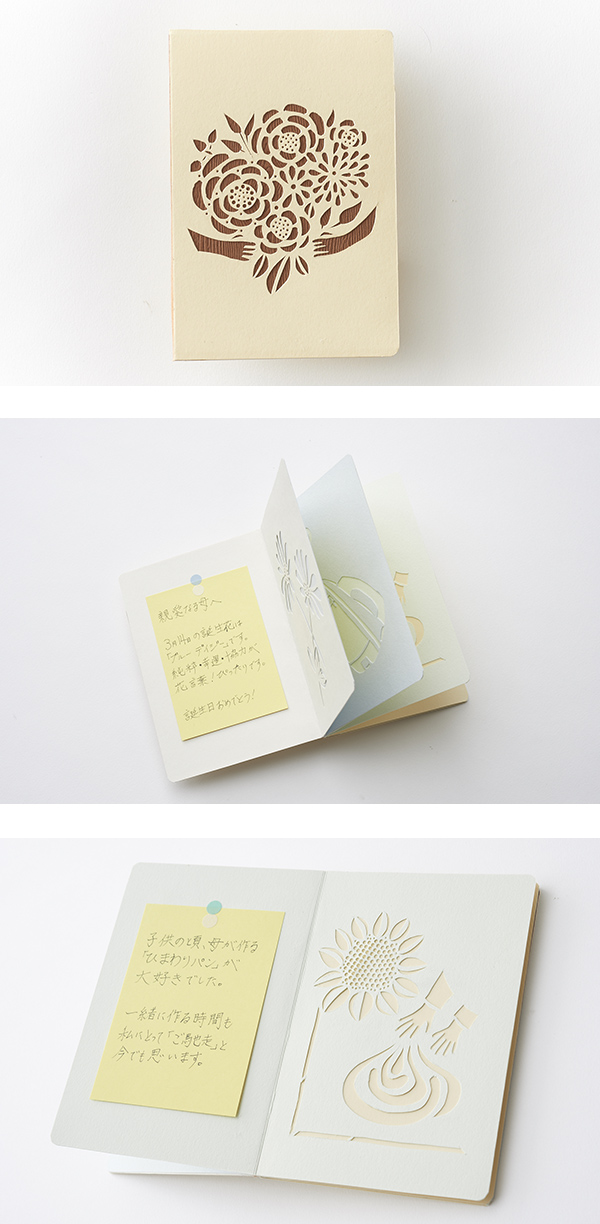 開くと立てて飾ることもできるカードです。