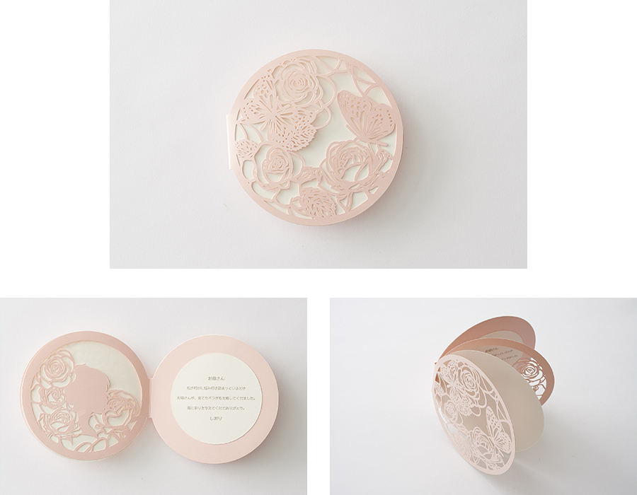 華やかさを表現するために切り絵で表現するために切り絵で表現しました。