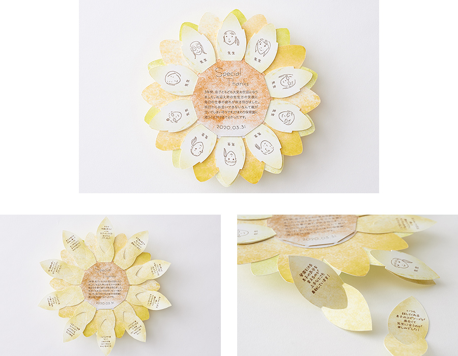 先生一人ひとりへのメッセージは花びらにしたためました。