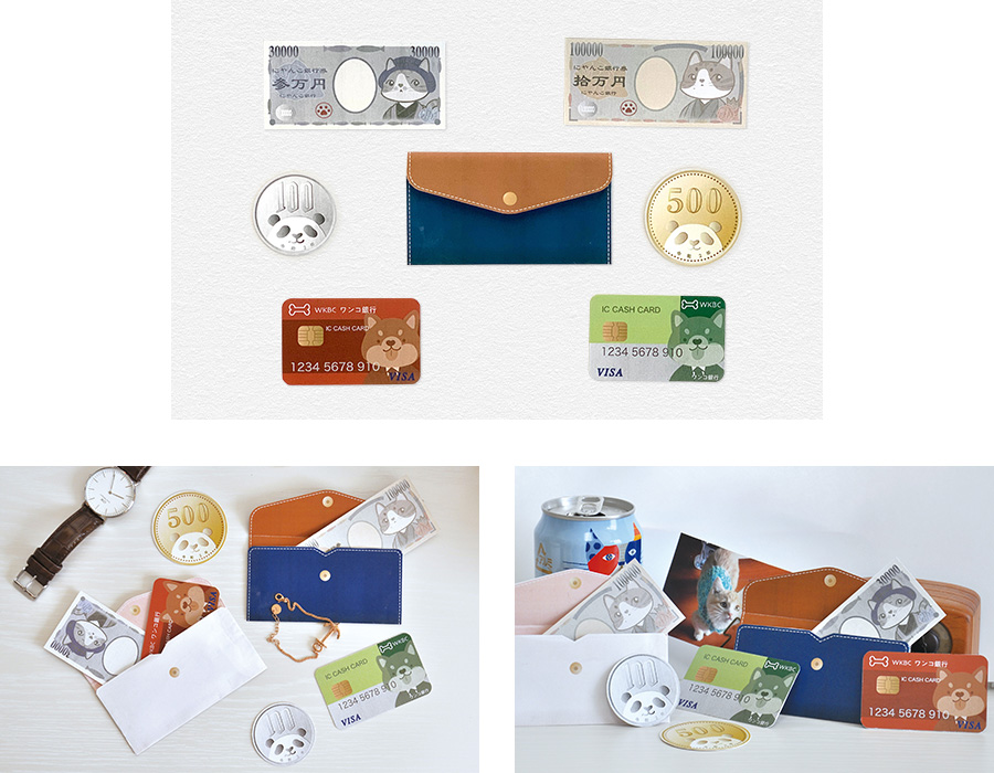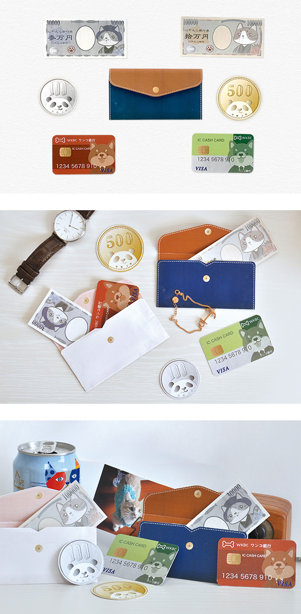 普段友達に「何が一番ほしいか」と聞いたら、冗談だったり本音だったり「お金」と答えました。そこでうちの猫の11ちゃんと13ちゃん及び友達の好きな犬とパンダをお金に描きました。面白いカードで友達の笑顔を見せてほしいです。みんな、ありがとう!