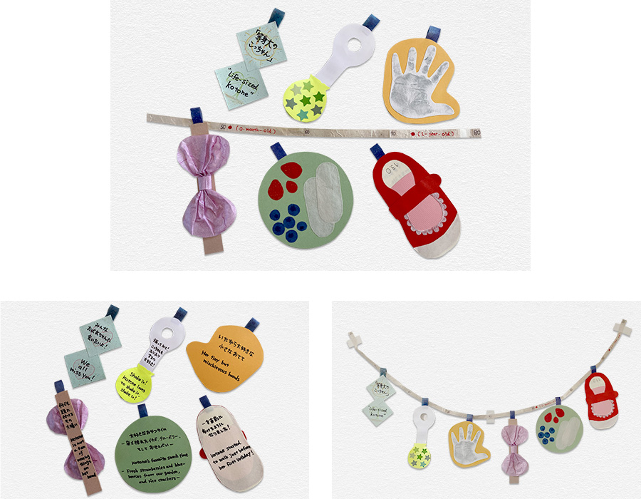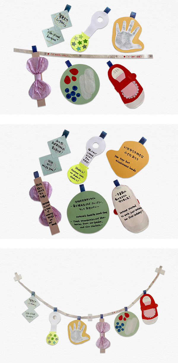 オーストラリアに住んでいるおばあちゃんは去年生まれた娘(ひ孫)のこっちゃんにまだ直接会ったことがありません。ビデオ通話では伝えきれない等身大の娘を感じてもらいたくてカードを作成しました。おばあちゃんがこっちゃんを抱きしめられる日が一日でも早く来ますようにという願いも込めました。