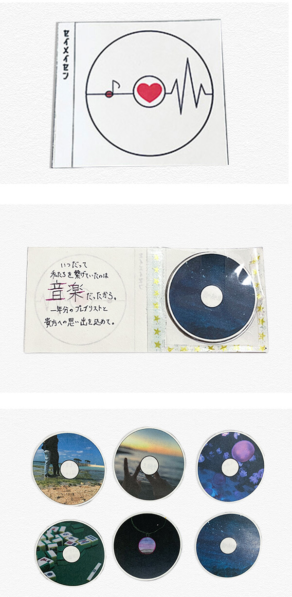 私にとってかけがえの無い人と出会って一年だったので、一年分の 思い出を形にしました。 私たち二人の培ってきた時間は、音楽と共に進んできました。なので、CDを模した形のカードに落とし込みました。