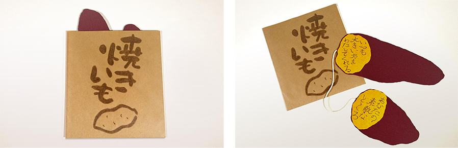 いつも私を優先してくれる母親。焼き芋と同じ、あなたのほかほかであたたかいところを知ってほしいという想いからこのカードを制作しました。普段は素直に言えないけれど、カードをひっくり返すのと同時に私の隠れた気持ちも伝わって欲しいです。