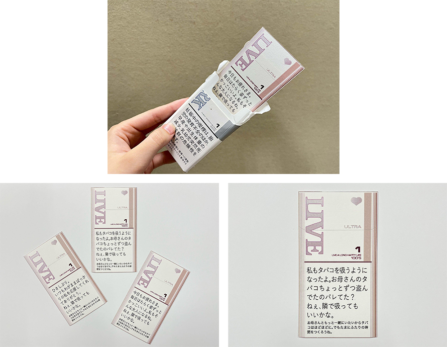 手に持った時の紙の質感などにも配慮し、繋げると1本になる仕組みなど完成度が高い作品でした。プライベートなメッセージですが、多くの方が同じ想いを抱けるようにコミュニケーション面でも良く考えられていると思います。