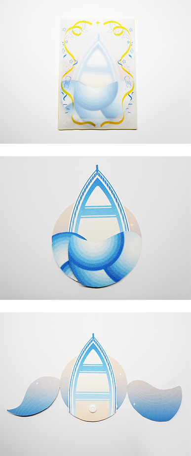 今年の夏に父が亡くなり、その父へ向けてこのカードを送りたいと考えました。私は父から離れたい一心で高校卒業を機に家出同然に家を出ました。それから3年程度実家には帰っていませんでした。それに加え幼い頃から無口な父とは会話も少なかったものですから、父について知っていることなんて本当に少なく、記憶にあるのは私が幼い頃によく連れて行ってもらった海のことくらいです。生前父は船に乗りたいと言っていました、だから私は父に、船を届けてあげたいと考えました。この手紙が父に届き、またその船が、静かで気持ちのいい海へ父を運んでくれることを願って制作しました。