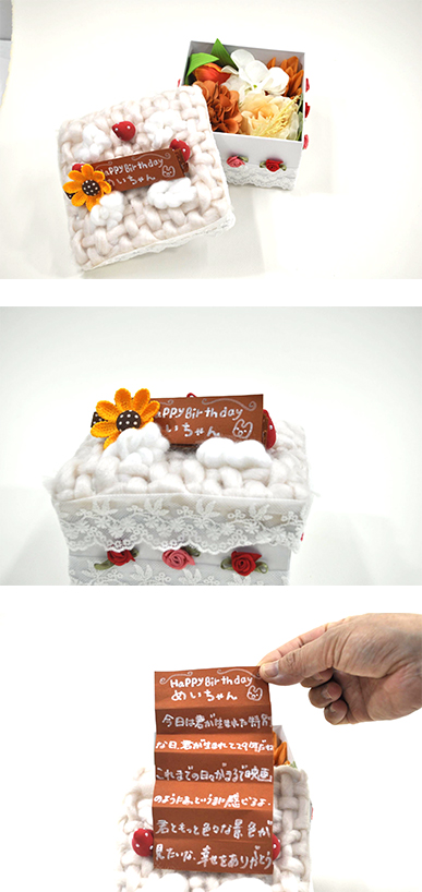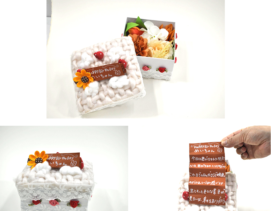 思わず目を奪われてしまうほど造形が美しく、オブジェクトとしてもかなり完成度が高い作品でした。メッセージ自体は「Happy Birthday」と極めてシンプルですが、カードそのものに込められた想いの強さが言葉を超えて伝わってきました。初めて見た瞬間に「玄関に置きたい」と思ってしまいました。