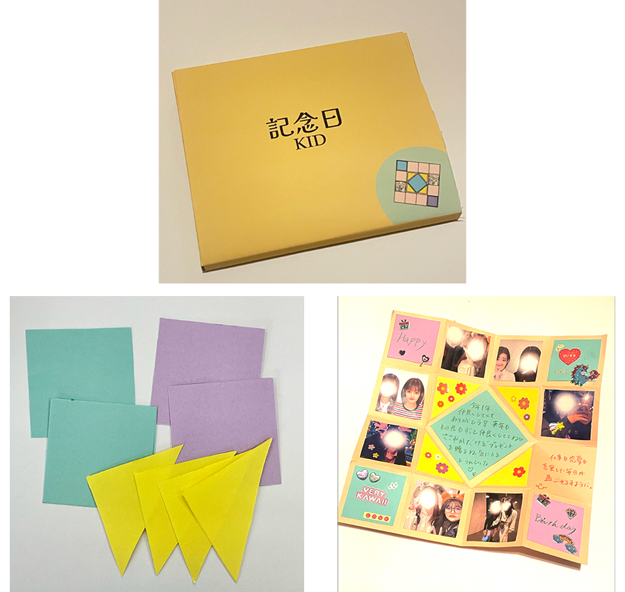 元々あるカードに想いを書くのも嬉しいことですが、届けたい人のことを思いながらメッセージカードを作れれば作って渡した人も、それを受け取った人もとても良い気持ちになると思い、どんな記念日でも簡単にメッセージカードを作れるように「記念日KID」として作成しました。
