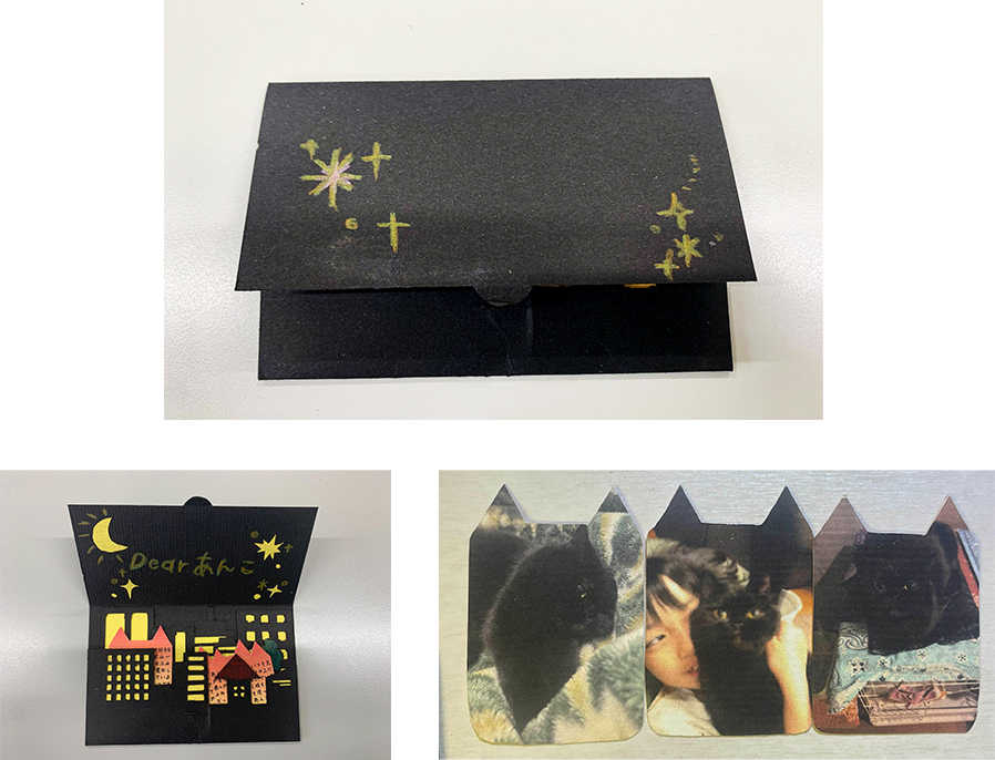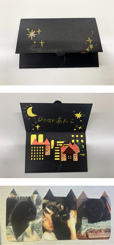 小学生からの友人へ宛てたカードです。直接では恥ずかしくて伝えられない日々の感謝を込めて制作しました。思い出深いシーンを切り絵で表現し、飾っても眺めたくなるよう意識しています。彼女がそばにいてくれたから今の自分があると思っています。その想いが伝わったら嬉しいです。