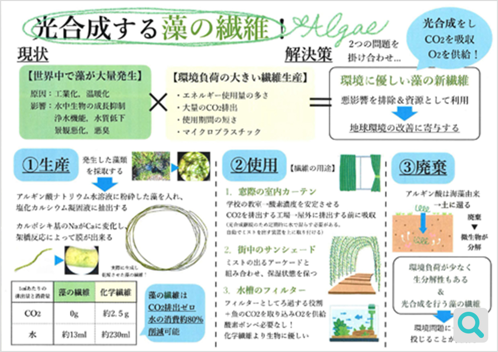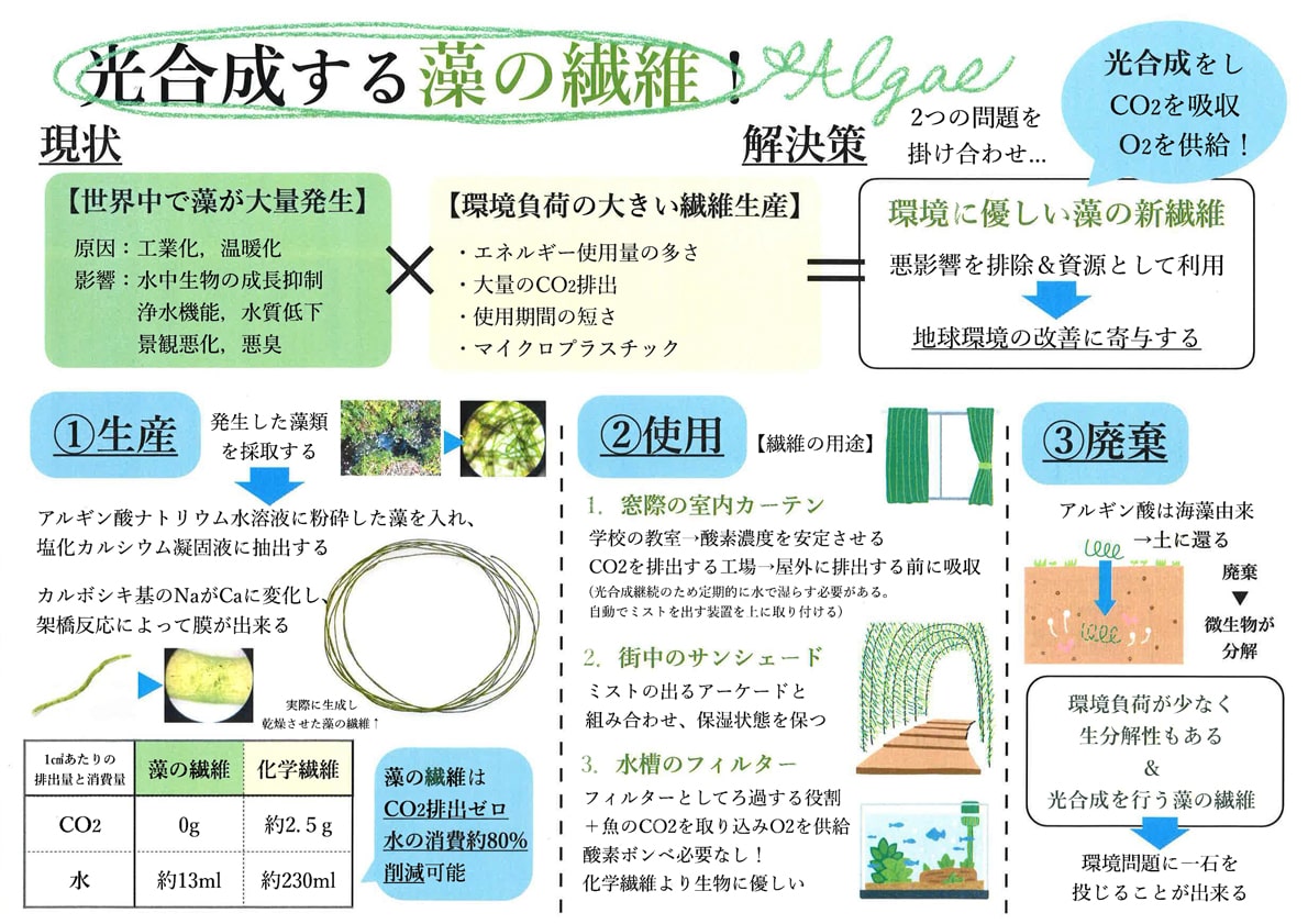 香蘭女学校 高等科 3年加藤 乃絵奈光合成する藻の繊維!