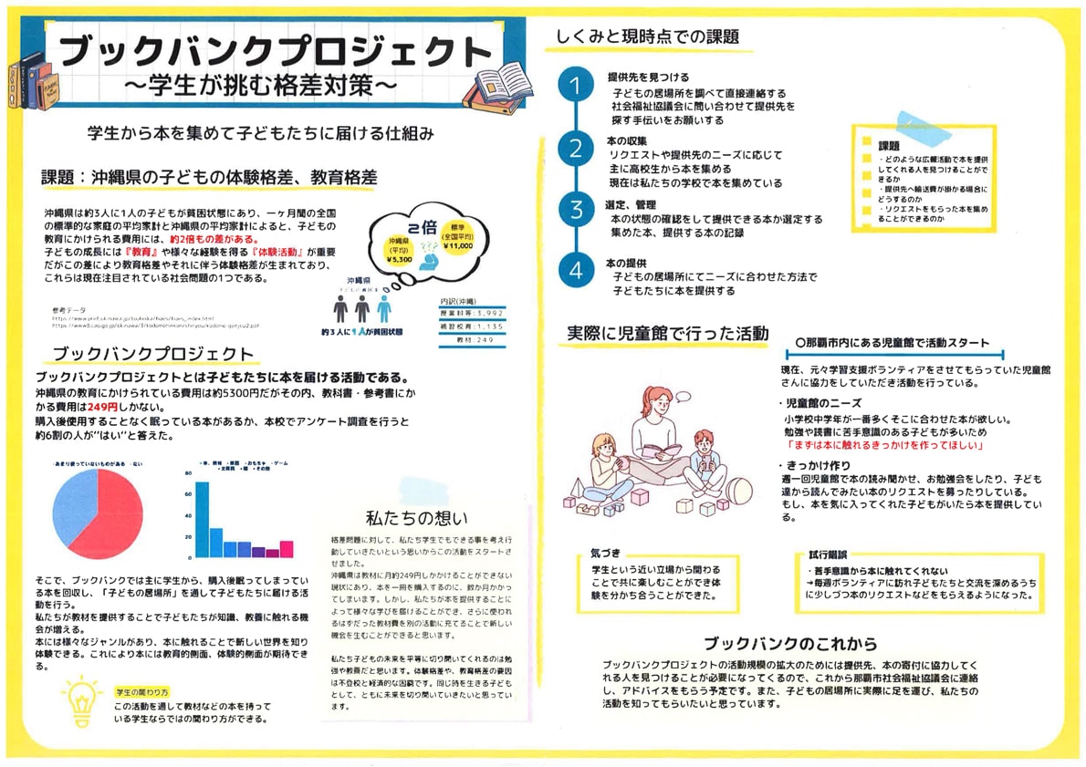 神奈川県鶴見区にある「沖縄南米タウン」を更に発展させるために、食のヒット商品を開発したい。と、沖縄や南米の素材を使い、実際にお菓子などをつくってみたアイデア。この熱意は大事です。ただし、沖縄南米タウンを盛り上げることが本来の目的ならば、食は地元のお店の方と共同で開発するなど独りよがりにならないようにもしたいものです。また、食品以外の別のアイデアも出てくることでしょう。食を自分で提供したい想いが強ければ、また違った方法もあるとは思います。この辺りは自分との相談ですが、まずは出来るところから始めてみるのは良いことだと思います。
