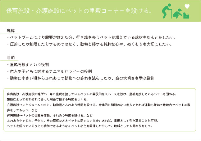 皆さんからいただいたアイデアを選考してみて、いいなと思うものはたくさんありました。ああ、こんな考え方はいいな、広まればいいなと選考していました。選考し終り、実際にあるかどうかを調べてみると既に行っているものが多いことに気付きました。