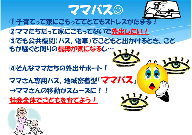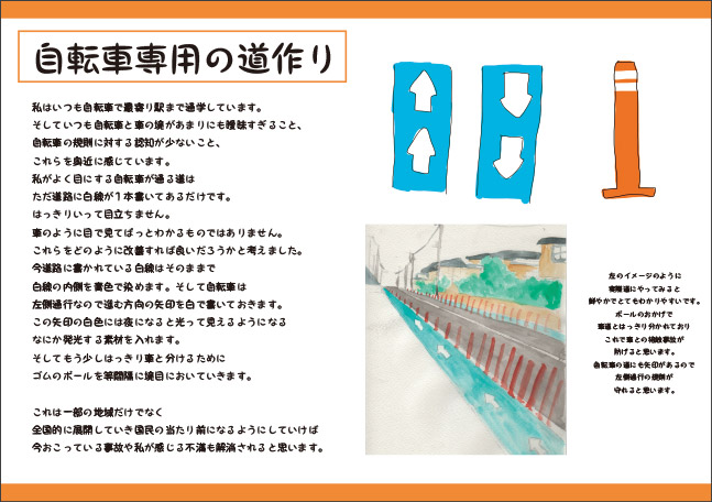 身近なものを取り上げるのは大切で、不便さなどの課題が見つけやすいことは確かです。今後はそこをさらに深く追求したり、逆にもっといろんなことに目を向けて問題意識を高めていってもらいたいとも思います。