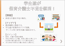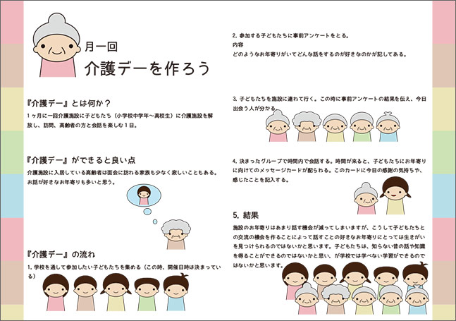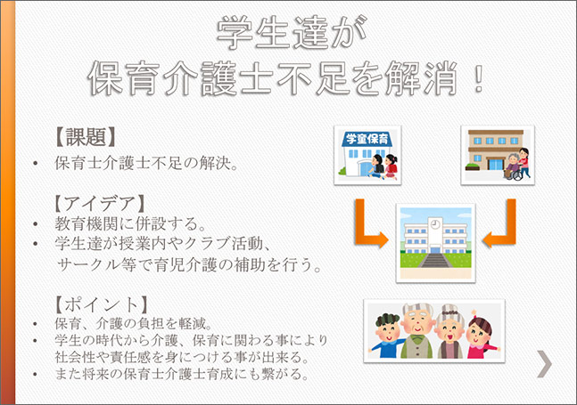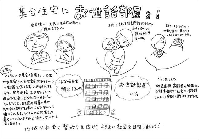 「介護デー」・「集合住宅にお世話部屋」など人との繋がりを重視し、すぐにでも実施出来そうなアイデアが今回高評価を得ていました。
