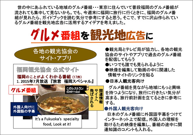 また、既にあるものをもっとアピールしたいという作品として「北海道のろうそくもらい」(日本版ハロウィン)、髪の毛を使った太陽電池(ネパールの学生が開発)があり、それ自体は素晴らしいがオリジナリティの観点から除外いたしました。