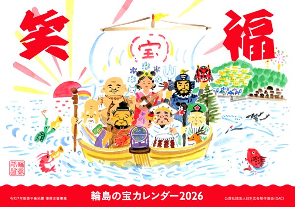 能登半島地震から1 年8 ヶ月。報道は減りつつありますが、輪島市の仮設住宅ではまだまだ慣れない生活と不安が続いています。このような中、「毎日の暮らしに寄り添い、心が和らぐものをお届けし、心のケアに繋げたい」という思いから、カレンダー配布プロジェクトを企画しました。「地元輪島にまつわること」を各月のテーマにOAC 所属クリエイター13 名が各人の想いを込めて制作し、2025 年11 月、輪島市の仮設住宅全世帯(約3,000 戸)にお届けしました。