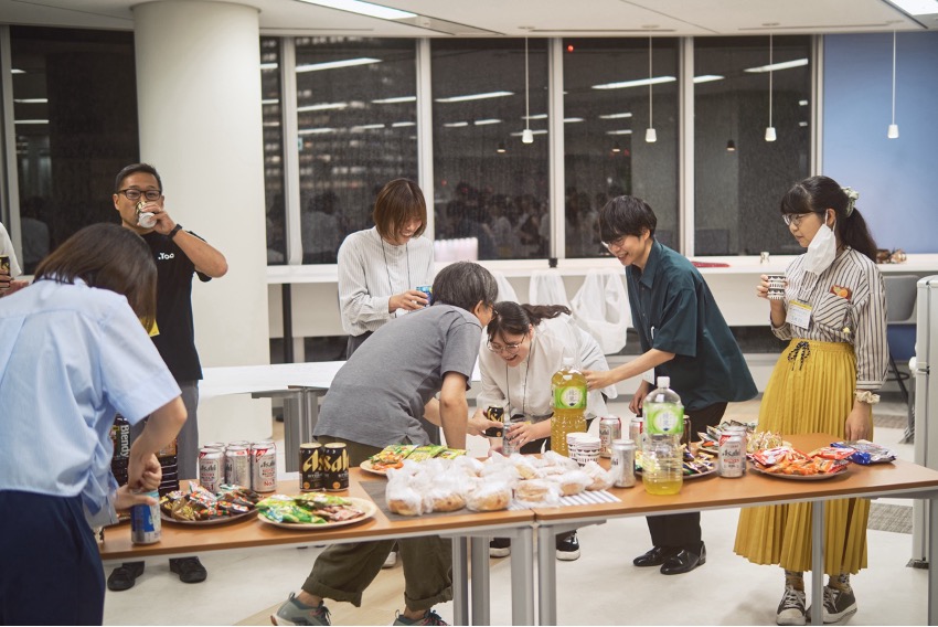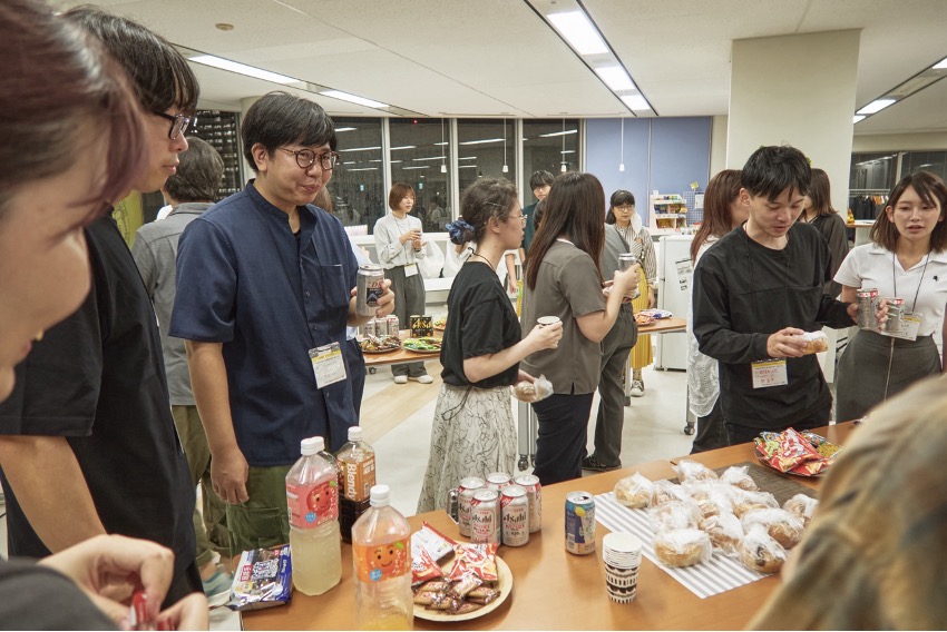 軽食のブッフェスタイル。「飲みながら、食べながら」初対面だというのに、実にいろんな話が飛び出します。