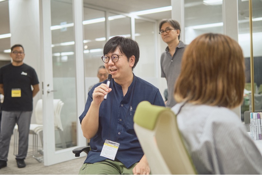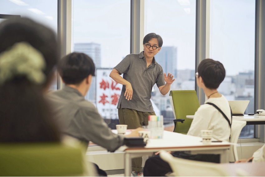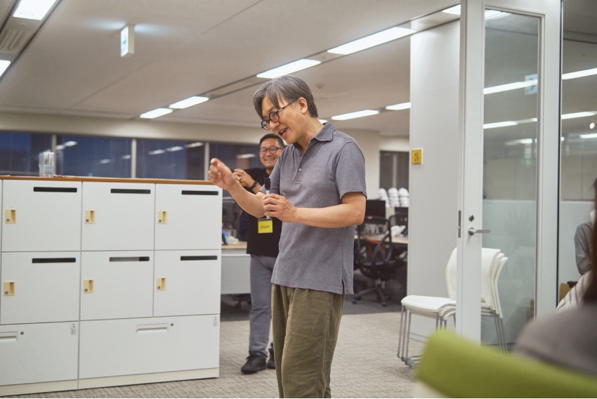 そして川崎さんの軽快なトークがスタート。プロフィール紹介、企画趣旨のご案内タイムです。平成レトロな川﨑節に最初は動揺していた若手クリエイターたちも⋯なんだか徐々に「じわる」のです。そうやって、いつのまにか川﨑ワールドに引き込まれていく…