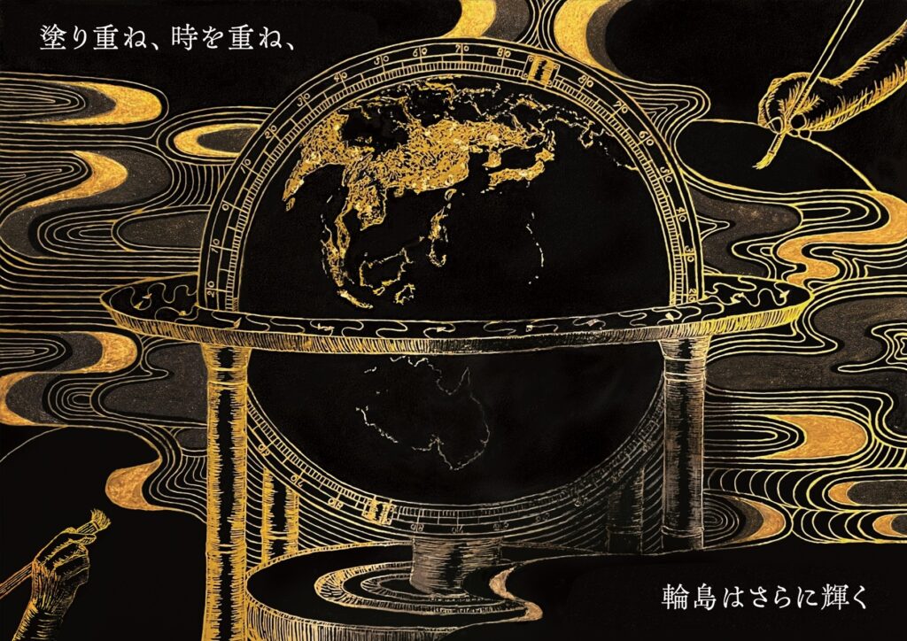 輪島塗の保存伝承には、ほかに代えがたい工芸素材の美しさと技術力の高さを広く伝えることが不可欠。輪島以外では実現不可能なものづくりを目指し、5 年の歳月をかけて完成したのが「輪島塗大型地球儀」(石川県輪島漆芸美術館所蔵)です。「地球儀を眺めることは、世界を俯瞰で捉えること。対立や分断を超えて他者に思いを巡らすこと」との願いが込められています。