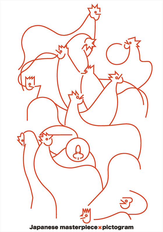 そんな日本発とも言えるピクトグラムを使って、名画の表現を試みました。陰影をつけず、平面的に表現する日本画と、対象を単純化して簡潔に表すピクトグラムとの間には、どこか共通する精神性があると思います。