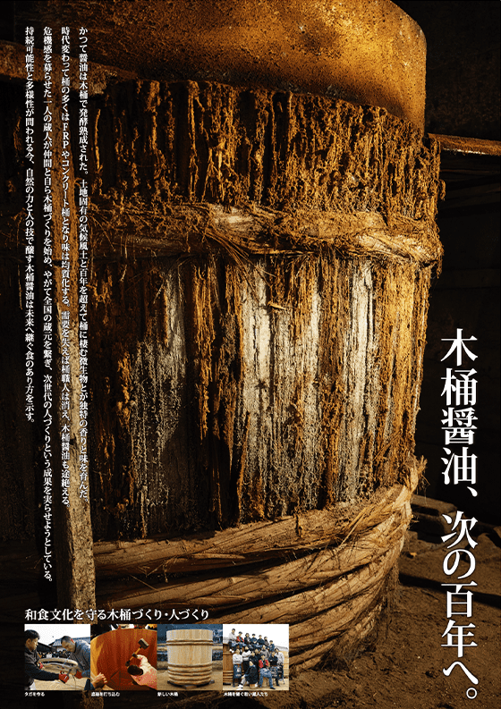 自然の力と人の技で醸す木桶醤油は、持続可能性と多様性が問われる今、未来へ継ぐ食と産業のあり方をさし示している。