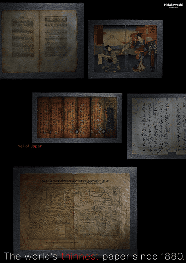 「流し漉き」と呼ばれる技術で、天然の植物繊維を絡ませて作られる和紙は、その強靭な保存性と環境へのやさしさで世界からSDGsの視点でも評価されています。1880年に誕生した「土佐典具帖紙」は、世界一の薄さを誇る和紙。人の肌の角質層と同じ、0.02mmという透き通るような質感は、まるで透明なベール。「土佐典具帖紙」は、日本古来の書物や仏像等、和の文化財修復に用いられてきました。未来に残したい歴史と文化を自然由来の紙の優しいベールが、1000年を超えて守り続ける。