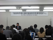クリエーティブに関する法知識について、株式会社電通 クリエーティブ・マネジメント局 渡部秀人氏を講師にお招きして、事例を多数紹介しながら解りやすい講演をしていただいた。