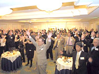 午後6時より、会場をザ・ガーデン・ルームに移し、青木理事の巧妙な司会で始まり、発起人でもある、上山英介様(大日本除虫菊(株)