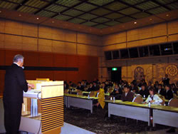 宮山担当理事の開会挨拶に続いて開演された第一部は、(株)電通法務室法務3部部長の中西開氏による「地財権トラブル防止のための実務とモラル」を演題にケーススタディを中心とする講演。参加者は、知財権に係わるリスクマネジメントの認識を深められ、そのノウハウを少なからず得られたことでしょう。