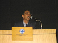 | 第2部は、(株)イーライセンス代表取締役社長の三野明洋氏が「ネットワークにおけるコンテンツ流通と権利処理」を演題に講演。自らが手がける著作権管理業務をベースに、著作物が安全に簡便に使用できるしくみを解説していただきました。知財コンテンツの利用者でもあるクリエーターには、大いに参考になったことと思われます。 |