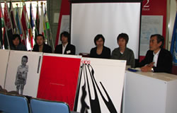 今までボランティアの経験はなく今回、ボランティアというものを体験しました。自分たちのつくったものは、この展示会であらゆる人に見てもらうものです。それだけに、表現する行為自体に責任を感じました。ボランティアというスタンス上、エイズと子供たちについて、間違ったことを伝えないよう、表現する内容について自問自答を繰り返しました。今回そのように考え抜いて作品が出来上がった時、私自身もやっとボランティアの入口に立てたような思いがしました。 |