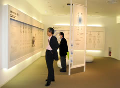 ゲストルームでは川越館長から、松下幸之助氏の生い立ちや人となりについてのお話をいただき、スクリーンで映像を鑑賞。その後は展示ルームに移動し、“経営の神様”と呼ばれた松下氏の肉声ビデオをはじめ、各種パネルや著書があり、「経営道・商人道」「経営者・リーダーの条件」「人材育成の考え方・人生の行き方」「政治への情熱・松下哲学の真髄」などの展示資料をゆっくりと見聞し、多くの感銘を得た。