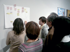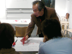 展開、次に参加者を3〜4人のグループに分けての実践的なクリエイティブ演習へ。始めはやや
