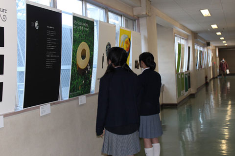 日本広告制作協会が取り組んだ「地球環境:あなたが世界を変える日」をテーマとして制作されたポスターを見る雪谷中学校の生徒達