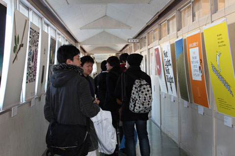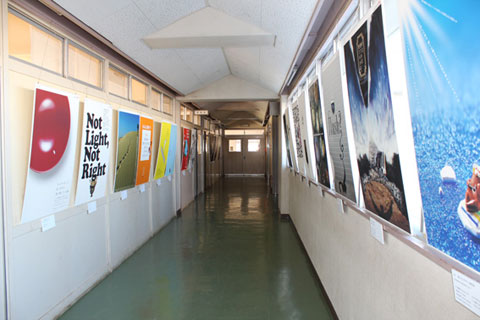 日本広告制作協会のポスターは、校舎の1階と2階に分けて展覧された。
