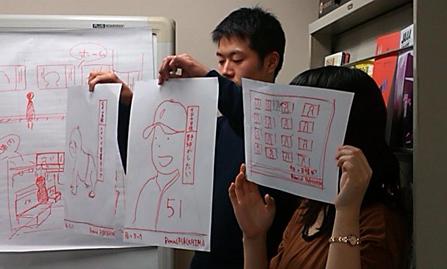 黒須講師は15分の延長を認め、みなさん必死で企画書とラフ案を作成。