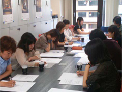 三上さんの話を真剣に聴いています。