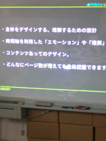 さて、設計の話。設計と聞くと引いてしまう学生が多くなっているようだ。ページもの、Webは全体構成を考え、流れを作って・・・と考えるのが面倒なのかもしれない。この観点で考えれば、TVの構成もその流れと思えるはず。序破急とか起承転結など、どんな気持ちでページを繰っていくか。その気持ちになって考えることは大切。