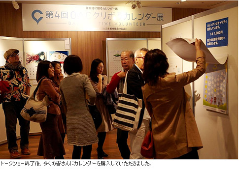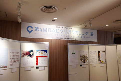 「第4回OACクリボラ」のprogram2として、”岩手県大槌町の被災地を支援します”の掛け声の下、心和むカレンダー展を開催しました。開催にあたり会員及び一般公募も含めて62点の作品が一挙展示されました。
