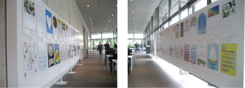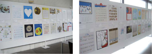 岩手県大槌町の仮設住宅で暮らす方々に寄贈するために取り組んだ2013年の月ごとのカレンダー62作品と、優秀作品12点よりなる印刷カレンダーを展示しました。